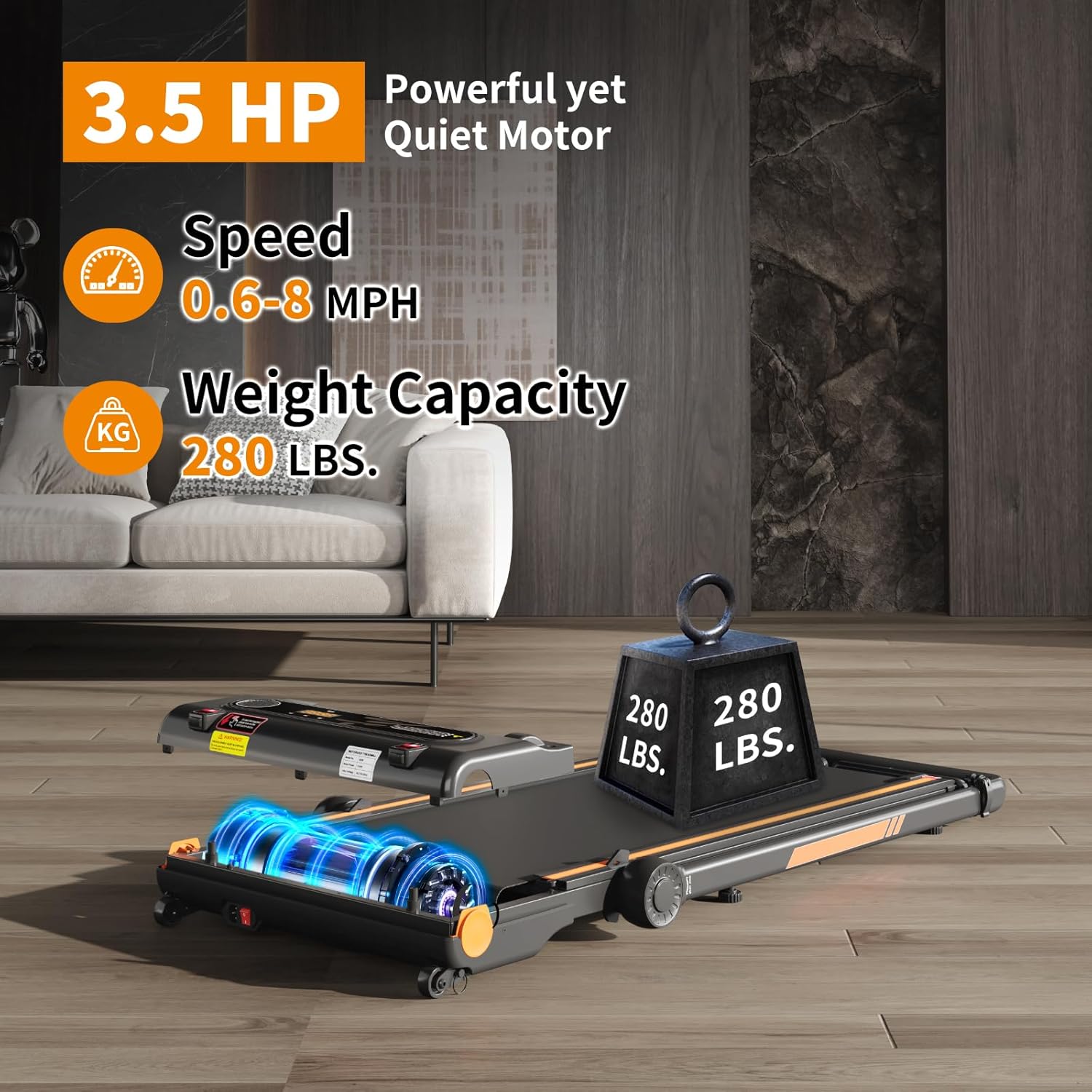 - Robust Performance and High Capacity: Designed for speeds ranging from 0.6 to 8 mph, this walking pad treadmill 300 lb capacity offers reliable performance and durability. Its powerful motor and sturdy construction cater to diverse fitness routines and user needs, making it ideal as a treadmill desk or a desk treadmill for office under desk.